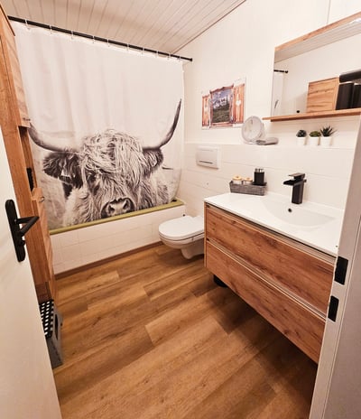 Große und geräumige Ferienwohnung mit drei Schlafzimmern einem Bad und 2 Toiletten für 13 Personen und zwei zusätzlichen Babybetten.